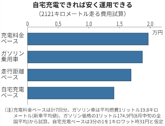 課題と感じたのは走行代だ。「電気代が安いからEVはお得」という決まり文句が、そこまで強調できないことがわかった。