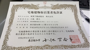 弊社では先月の代表取締役変更にともない宅地建物取引業者免許証も変更致しました。
