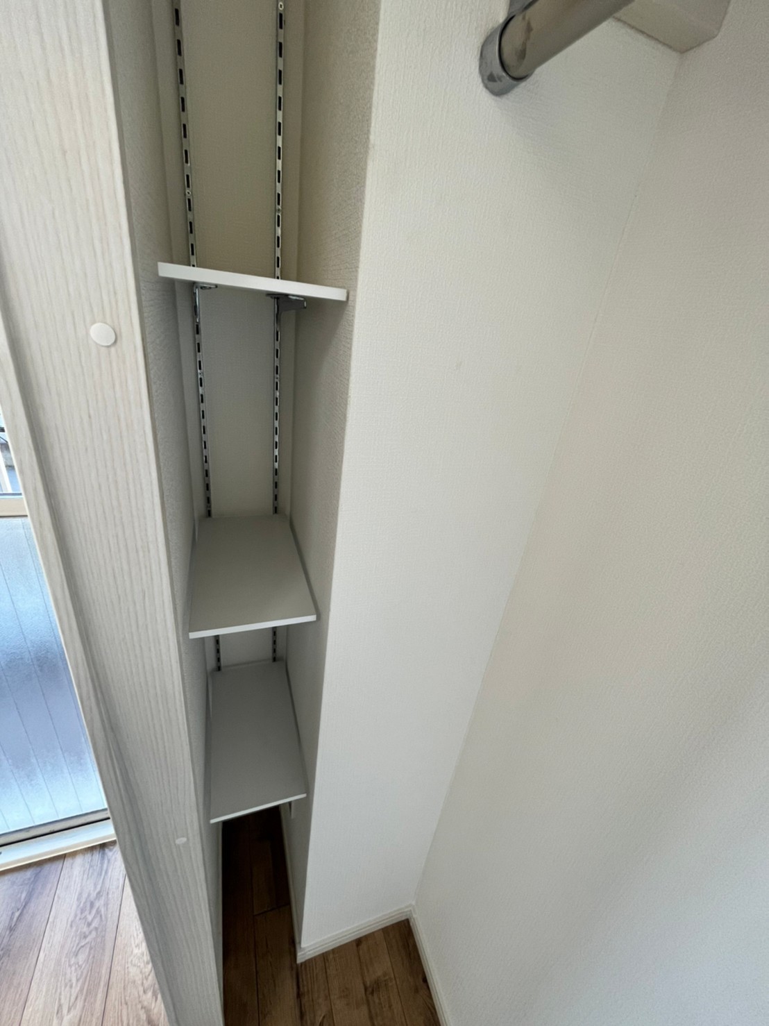 廊下、下足棚隣にクローゼット設置、各居室にクローゼット、キッチン吊戸棚、クローゼットのデッドスペースには可動棚を設置し、空間を余すことのない工夫を施しています!!