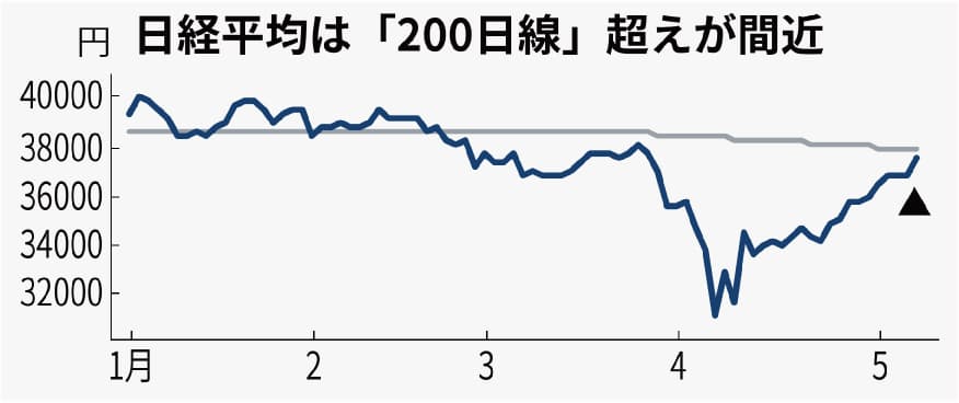 世界の株式相場が急速に持ち直している。米英や米中など関税を巡る2国間の貿易交渉が進展し、世界の株式相場の8割程度が「相互関税」の発表前の水準を先週上回った。投資家心理は悲観から楽観へと一気に切り返したが、急ピッチな株価上昇には戸惑う声もある。 トランプ関税の「ディール」が本格始動した。8日にはトップバッターの英国と貿易協定を妥結した。米国は英国車への関税を軽減する「輸入枠」を設けることになり、自動車への関税率は27.5%から10%にまで引き下げられた。 最も激しく対立する中国とも、スイスで現地時間10日に初の閣僚級協議を開いた。トランプ大統領は自身のSNSで「多くのことを議論し、多くの合意に至った」と誇示した。同氏は現状145%の対中追加関税を80%に下げられると指摘している。 ピクテ・ジャパンの田中純平投資戦略部長は「関税交渉が妥結する可能性があるとわかり、市場はいったん落ち着きを取り戻した。経済指標などで実際の米経済への影響はまだ見えておらず、株価の上昇は投資家心理の改善によるものだ」と指摘する。 新たなリスク材料として急浮上したインドとパキスタンの核戦争シナリオも、米国の仲介によって10日にはいったん停戦で合意し、小康状態に入った。 対米交渉への過度な警戒感と地政学リスクの後退で、投資家心理は改善している。それを映すのが米CNN算出の「恐怖と強欲指数」だ。株式や債券の値動き、オプション取引の動向など7項目から市場のリスク許容度を0〜100で指数化し、5段階評価する。1カ月前の4月8日時点では3と「極度の恐怖(extreme fear)」水準でも底値圏にあったが、先週末には62と「貪欲(greed)」水準と今年最も高い水準に持ち直した。 投資家の心理の改善に伴い、4月上旬から進んできた「米国売り」が足元で巻き戻されている。ドルの主要通貨に対する総合的な強さを示すドル指数は8日、約1カ月ぶりに100台を回復。逆に安全資産としてマネーが流れ込んだ金はニューヨーク先物(中心限月)が同日、前日比3%近く下げる場面があった。 心理の改善は世界的な株高を促している。代表的な世界株指数MSCI ACWI(現地通貨建て、配当なし)は9日を1014で終え、「相互関税」が織り込まれる直前の4月2日終値(1012)を2日連続で上回った。ACWI算出の土台となる先進国・新興国の計47の国・地域別指数をみると、5〜9日の週は8割相当の37の国・地域が超えた。 米S&P500種株価指数は相互関税ショック後の安値から1カ月ほどで14%上昇。戻りがより速い日経平均株価は20%上げ、定義上は「強気相場」入りした。急ピッチな株価上昇をもたらしたのは、相場のトレンドや経済環境の変化を読んで先物を機動的に売買するCTAやマクロ系ヘッジファンドといった短期筋が主体との見方も多い。 この先の動向を占ううえで重要なのが、株式の長期的に見た買い付けコストを示す「200日移動平均線」だ。過去200営業日(およそ1年間)の終値平均値をチャート上でつないでつくる。日米の株価指数はともに200日線を下回る水準で推移していたが、日経平均では先週末時点で3万7938円と実勢値との差は1%強、S&P500も5748と2%弱まで接近した。 これを抜け切れれば相場は本格的な回復への弾みが期待される一方で、「上値抵抗線として意識され、抜けられなければ二番底を探る展開もありうる」(みずほ証券の三浦豊シニアテクニカルアナリスト)との声もある。 一方で3万8000円台の累積売買代金は価格帯別で最も多く、戻り待ちの売りが出やすいとの指摘もある。今週は売り手と買い手との攻防が激しくなる可能性がある。 米国では消費者物価指数(CPI、13日)や小売売上高(15日、いずれも4月分)という関税の米経済への影響を判断する上で重要な経済指標の発表が相次ぐ。ホンダやマツダなど自動車大手、ソニーグループ、三菱UFJフィナンシャル・グループなど3メガバンクといった主要企業の決算発表も相次ぎ、米関税政策を踏まえてどのような見通しが立てられるかに注目が集まる。 日本の1〜3月期の国内総生産(GDP)速報値の発表が16日に控える。関税発動前の「過去の数字」とはいえ、マイナス成長を予想するエコノミストも多い。トランプ関税が景気や企業業績に与える影響を慎重に見極める重要な1週間になる